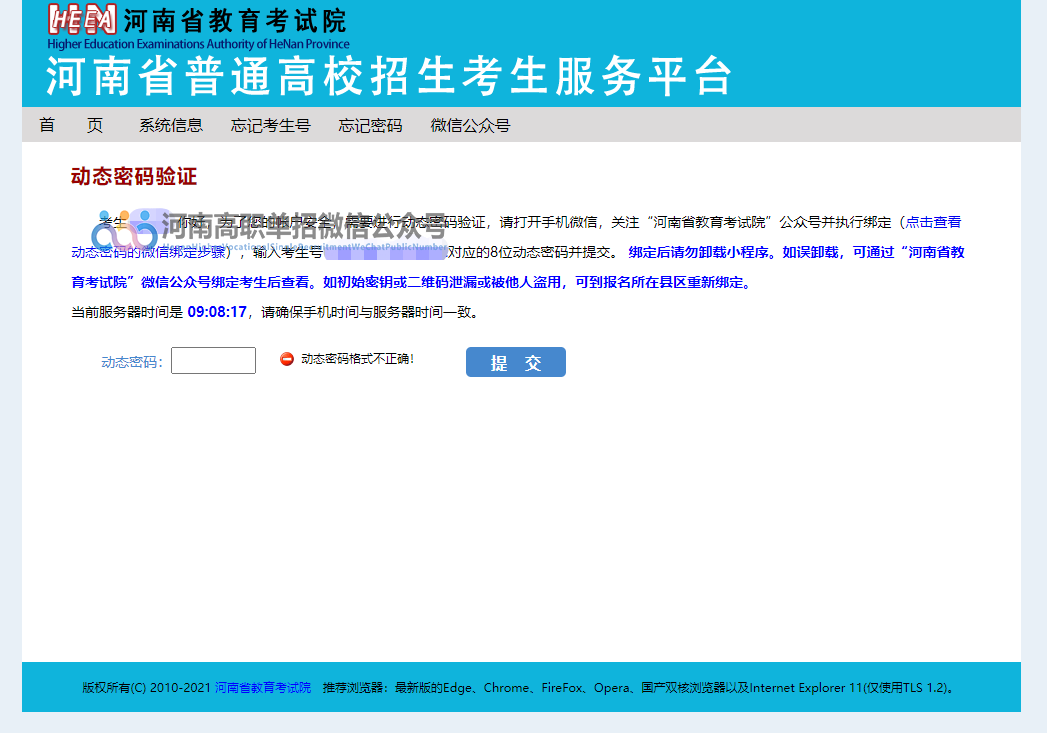 登录后有一个动态密码输入页面,输入接收到的动态密码,填写后提交。