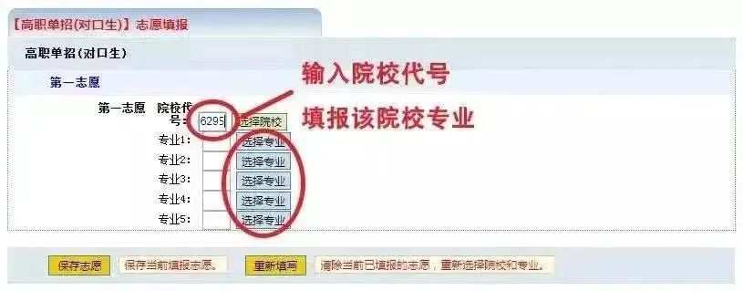 每位考生可以填写1个院校,1-5个专业,可填满也可不填满。填写完成后点击保存志愿。