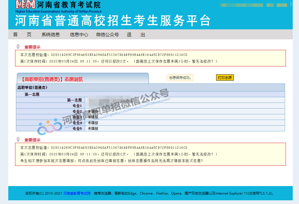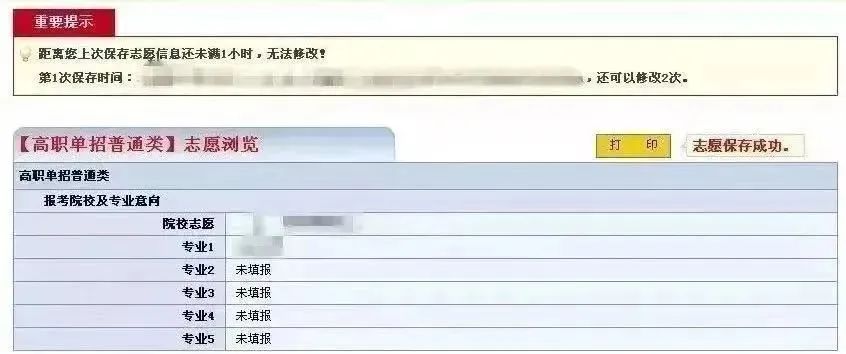 志愿保存成功后页面显示如下